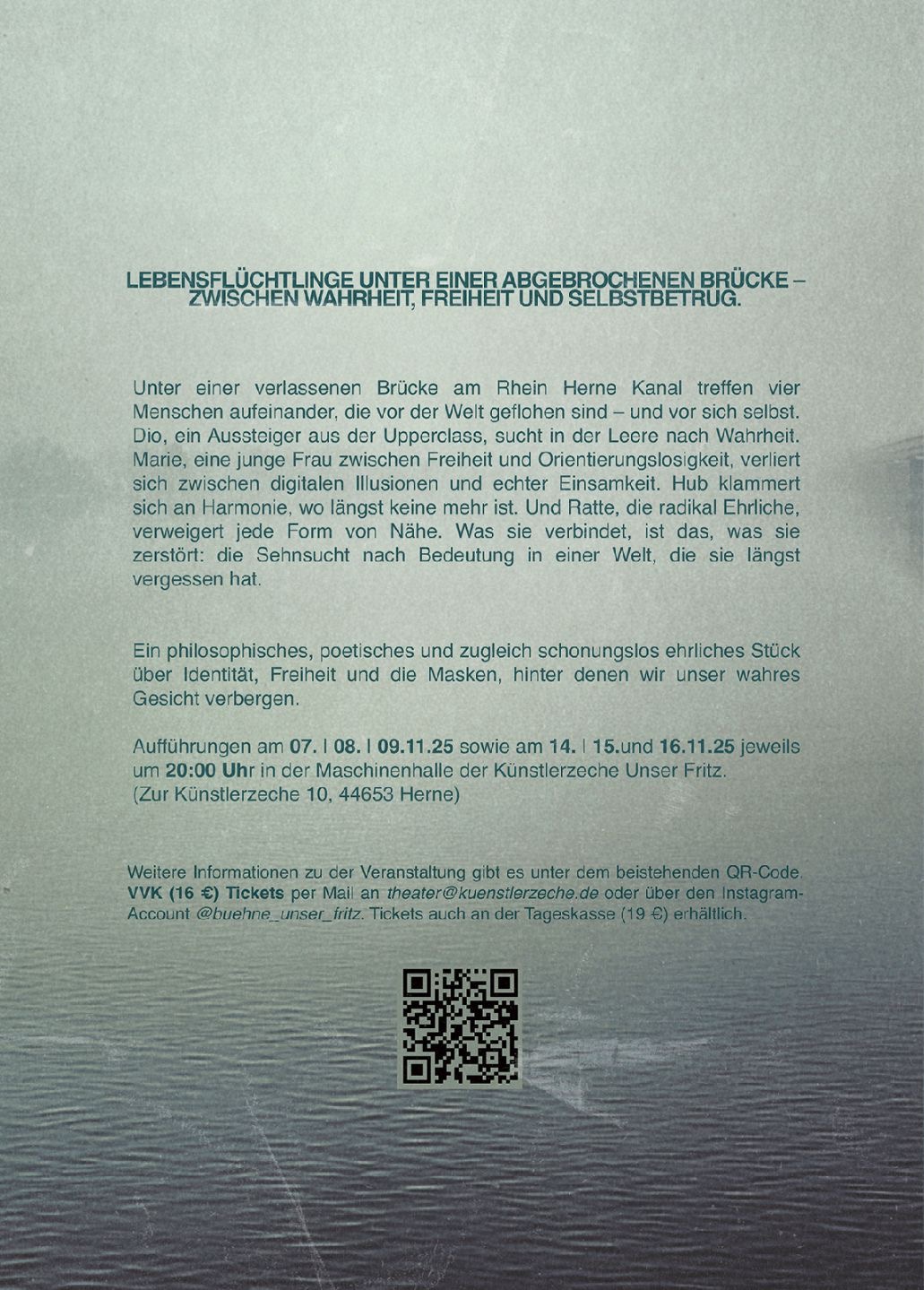 Unter einer verlassenen Brücke am Rhein Herne Kanal treffen vier Menschen aufeinander, die vor der Welt geflohen sind – und vor sich selbst.